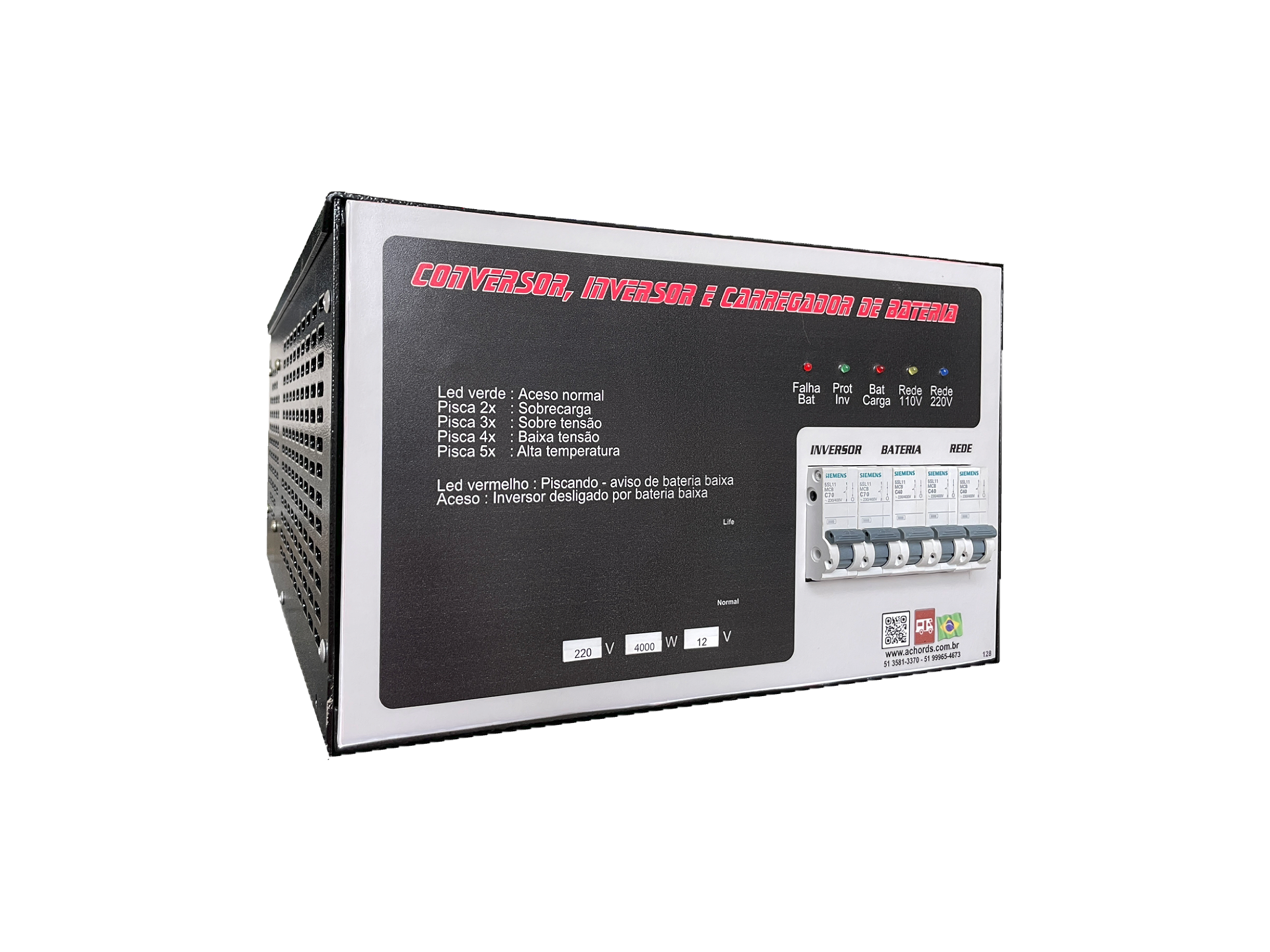 Nosso 4x1 seletor automatico entrada de rede externa 110v ou 220v com carregador de baterias de ate 50amp inteligente de dois ciclos e inversor onda pura integrado.